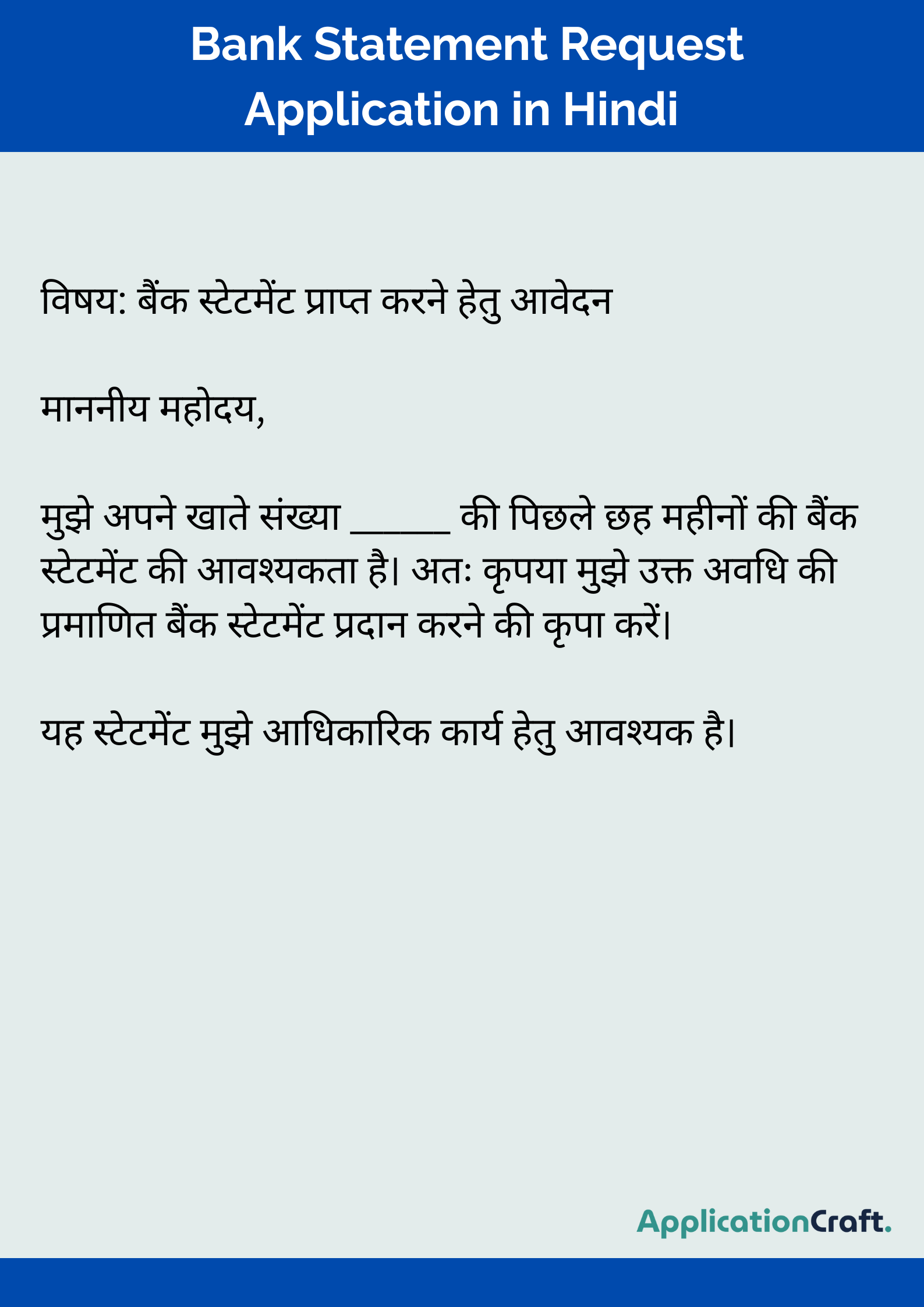3. Bank Statement Request Application in Hindi (बैंक स्टेटमेंट हेतु)
